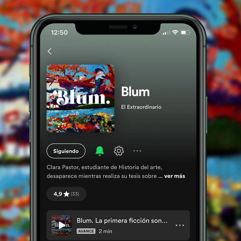 Blum es una historia de misterio en formato podcast que he creado, escrito y dirigido con Carmen Pacheco para El Extraordinario. Obtuvo una triple nominación en la edición de 2023 de los Premios Ondas Globales del Podcast y ganó el premio a Mejor Branded. La versión original de Blum es en español y se estrenó en junio de 2022, pero también hay disponible una versión en inglés que estrenamos en junio de 2023.